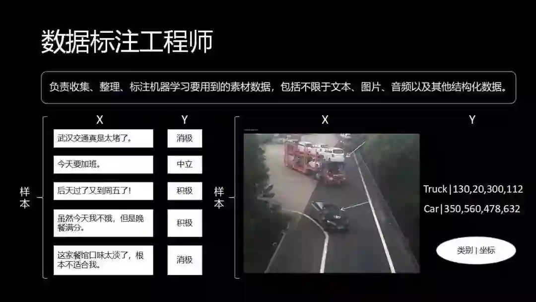 负责收集、整理、标注机器学习要用到的素材数据,包括不限于文本、图片、音频以及其他结构化数据。