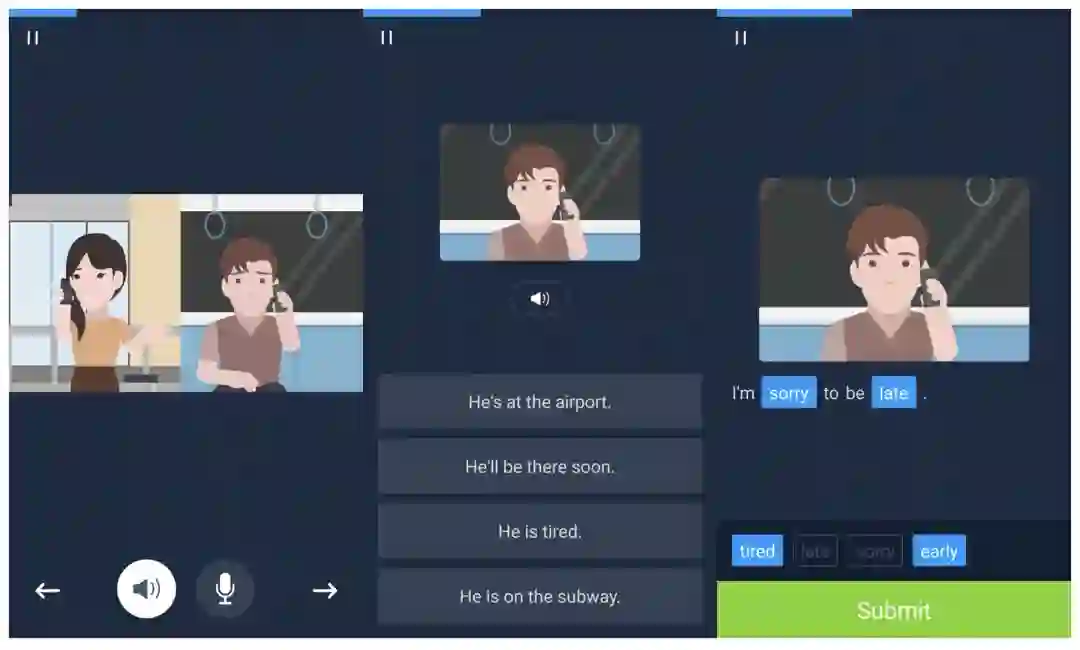 懂你英语特有的AI老师,24小时在线辅导——等地铁、陪娃上兴趣班、午休在公司茶水间、晚上睡觉前……都是可以充分利用起来的碎片化时间,随时随地,拿起手机就能学。