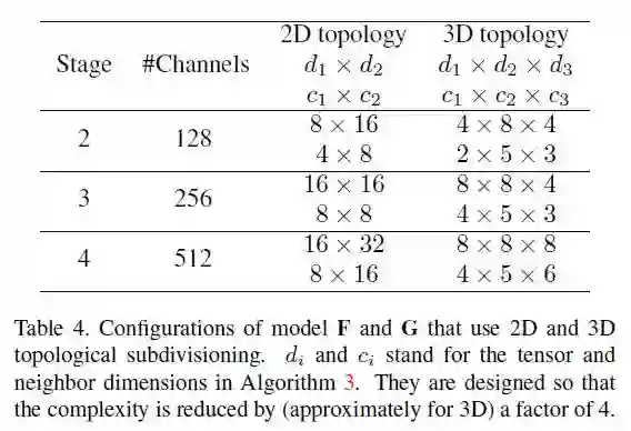 基本思路:输出的通道的值,只和与它相邻的通道有关系。如何定义相邻呢? 对于一个输出,假设标准卷积需要30维通道来表示,在拓扑细分方法里,我们可以用一个2-D张量空间或者3-D张量空间来重新排列这30维通道。举例来说,假如排列方法为2-D:30=6*5。那么如果要输出一般意义上第13维通道上的值,那对应在2-D张量空间,即是(3,3)位置的值。此时,考虑位置(3,3)及其周围的值即可。我们用(d1,d2,...,ds),来表示张量空间,显然,他们的乘积与通道数n的关系为:d1*d2*...*ds=n。我们考虑的位置(3,3)的邻域,用(c1,c2,...,cs)表示。若c1*c2*...*cs=c的话,经过拓扑细分,能将计算复杂度降低为原来c/n。具体算法为: