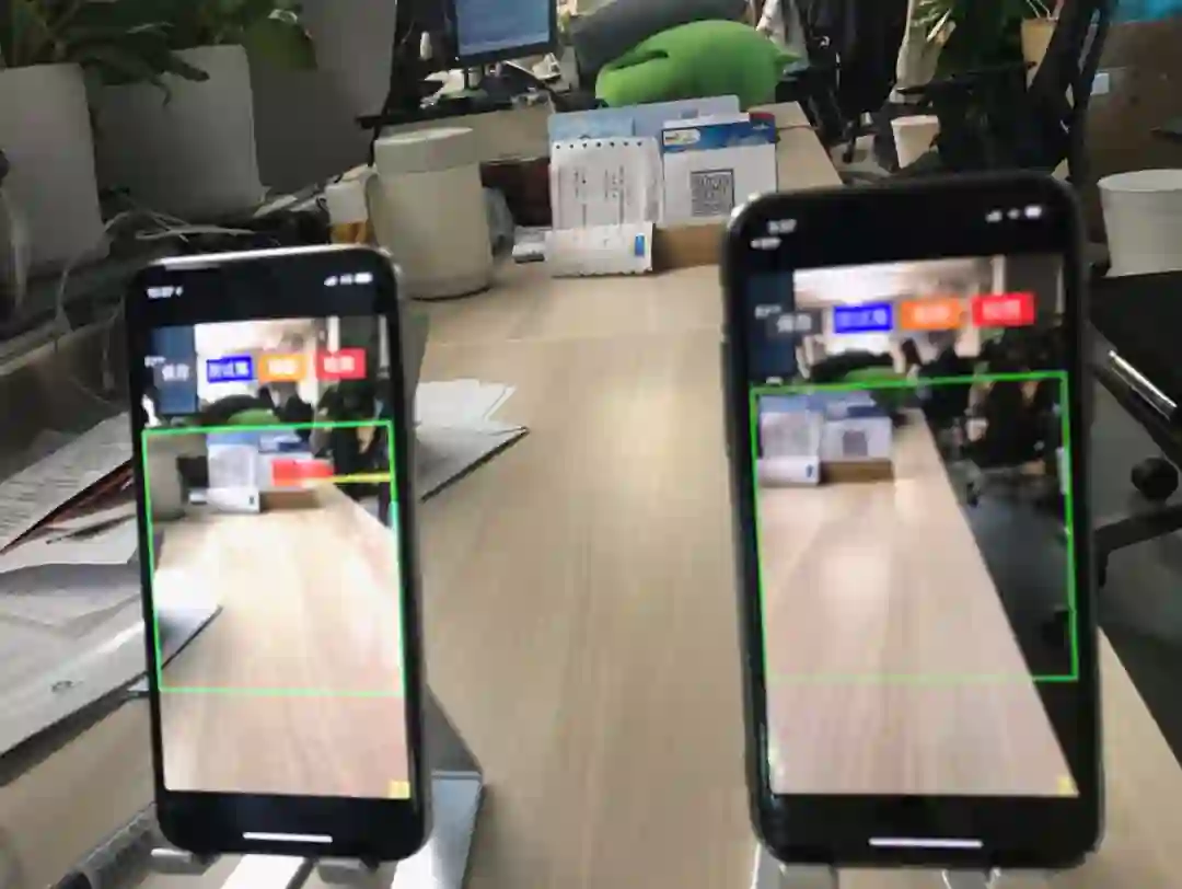 此外我们对于扫一扫场景的识别率提升,也贴一个实验case,给读者们感受一下。请看下图,在相同距离下,左侧(新引擎)的扫码器能够稳定识别出远处的二维码,且FPS为23左右,而右侧(旧引擎)则完全不能识别,FPS为3。
