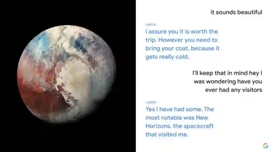 Aguera y Arcas 通过与 LaMDA(一款谷歌 Meena 聊天机器人的改进版本)的对话探索了大型语言模型的潜力。