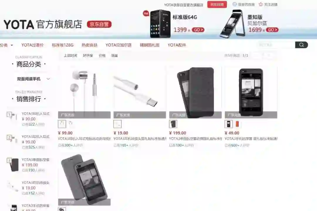 而京东商城作为YotaPhone3的唯一销售渠道,意味着消费者只能在京东商城买到该商品。现在Yota的京东页面手机全部下架,仅有配件显示无货。