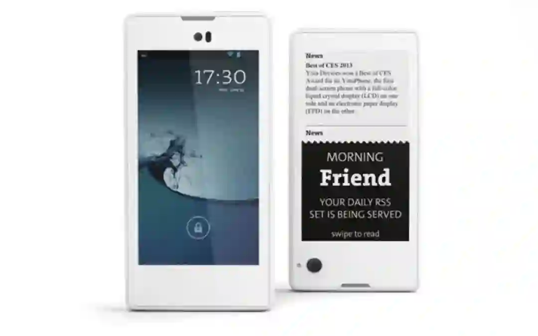 在Yota Device成立的两年后,它的首款产品YotaPhone1就面世了。正如前文所说的主打移动阅读市场,第一次将手机做成双屏形态,背部一块E-Ink电子墨水屏,护眼、低功耗、适合长时间阅读,手机翻过来即可看书,不用携带更多的东西。