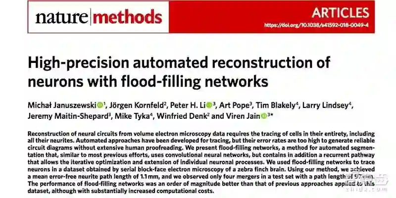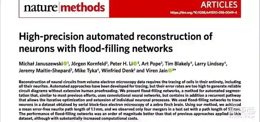 智东西7月17日消息,昨日,《Nature Methods》刊登了谷歌新论文《High-Precision automated reconstruction of neurons with flood-filling networks》,称其构建的AI系统将帮助神经科学家更好的理解大脑结构和功能。