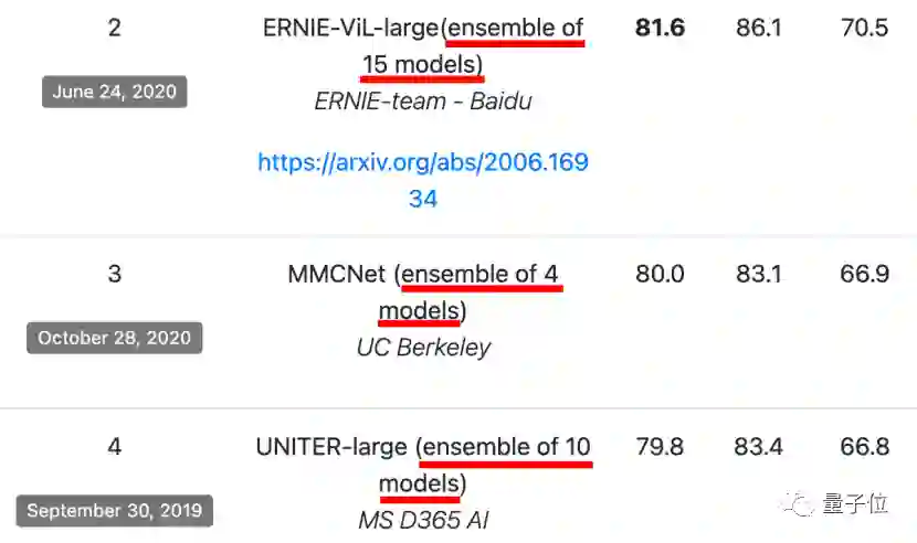 腾讯微视视频理解团队在多模态领域长期耕耘,此次以BLENDer单模型,夺得高分「81.6,86.4,70.8」,占领榜首。据团队介绍,BLENDer研发时间不到3个月。