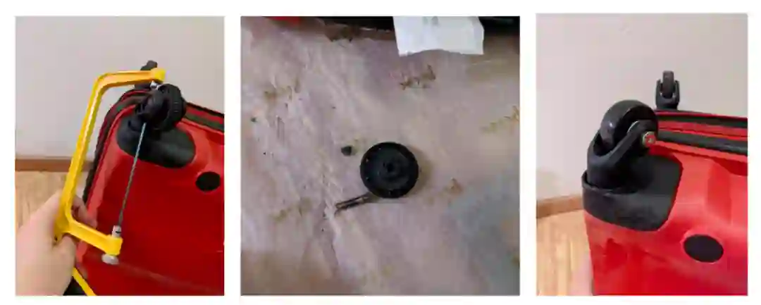 锯断螺杆、拆掉旧轮子、换上新轮子