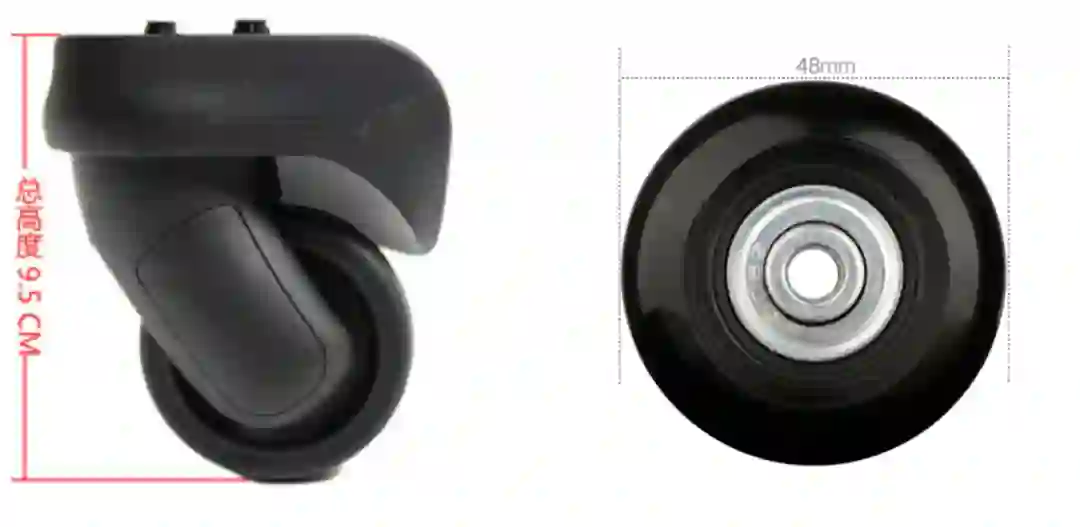行李箱的万向轮在五月回家时有一个秃噜皮了,但一直放着没有修它,这都不是钱的问题,而是拖着坏掉的箱子出去修真的非常不方便。但在两次外出都只能用闲置的单向轮行李箱之后,我认真把修轮子这件事提上了议程。在某宝上搜了搜,原装的轮子带脚整个拆换是 200 元,第三方轮子只要 7 块钱。差价过大,而且我想当然地认为操作难度和拧螺丝差不多、没什么难的,所以就开始量内径外径挑轮子。