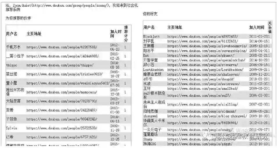 本研究分别收集了两个小组的成员基本信息(ID、性别、地区),社交信息(关注的人、被关注的人、参加的小组),与资源的交互信息(想看的图书、已看的图书、在看的图书、成员对图书的评分)以及资源信息(所有图书的标题、年份、作者、标签等信息),并对原始数据进行了清洗(去除了两个小组被注销的账号)。
