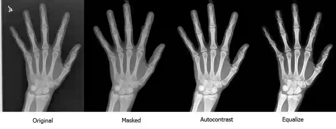 本文介绍了如何开发可以准确评估骨骼成熟度的自动骨龄评估系统,该系统可以得到与放射科专家相似或更好的结果。我们评估了手骨不同区域,发现可以仅对掌骨和近端指骨进行评估,得到的结果与对整个手骨进行评估的结果相差无几。为了克服放射图像的质量和多样性问题,我们引入了严格的清理和标准化过程,以显著增强模型的鲁棒性和准确率。