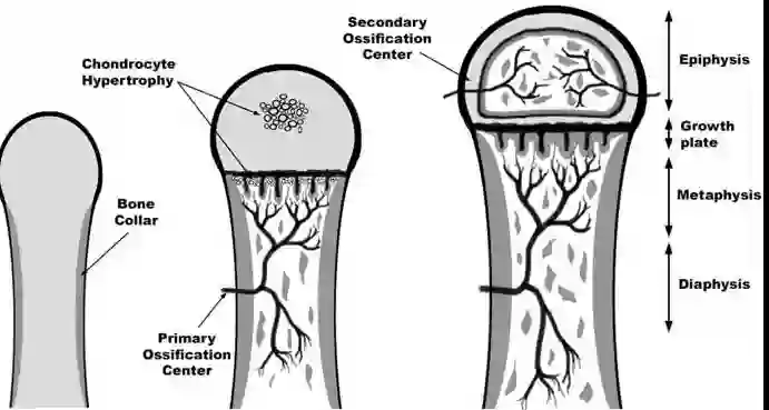 骨骼成熟度主要是通过骨骺中次级骨化中心的发育和骨化程度来评估的。几十年来,评估骨骼成熟度通常是根据对手骨和手腕的骨骼发育情况进行可视化评估来进行的。以下是放射科医生在查看手部 X 光片时看到的内容: