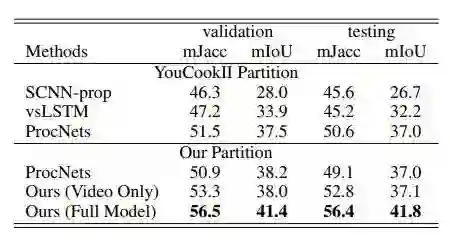 表6:不同模型在YouCook II数据集的Procedure Extraction任务上的实验结果