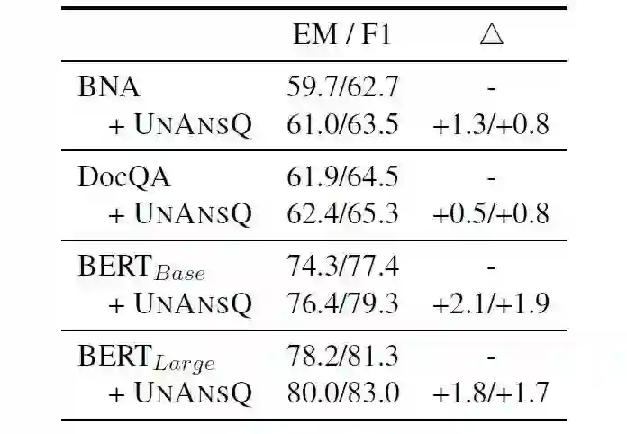 然而在现实生活中,往往无法保证给定的文档一定包含某个问题的答案,这时阅读理解系统应拒绝回答,而不是强行输出文档中的一个片段。针对这一问题,同样有很多工作从模型角度切入,以提高系统判断问题是否可以被回答的能力,做法可大致分为在抽取答案的同时预测问题可答性和先抽取答案再验证两类。而微软亚洲研究院的研究员从数据增广的角度来尝试解决这一问题。