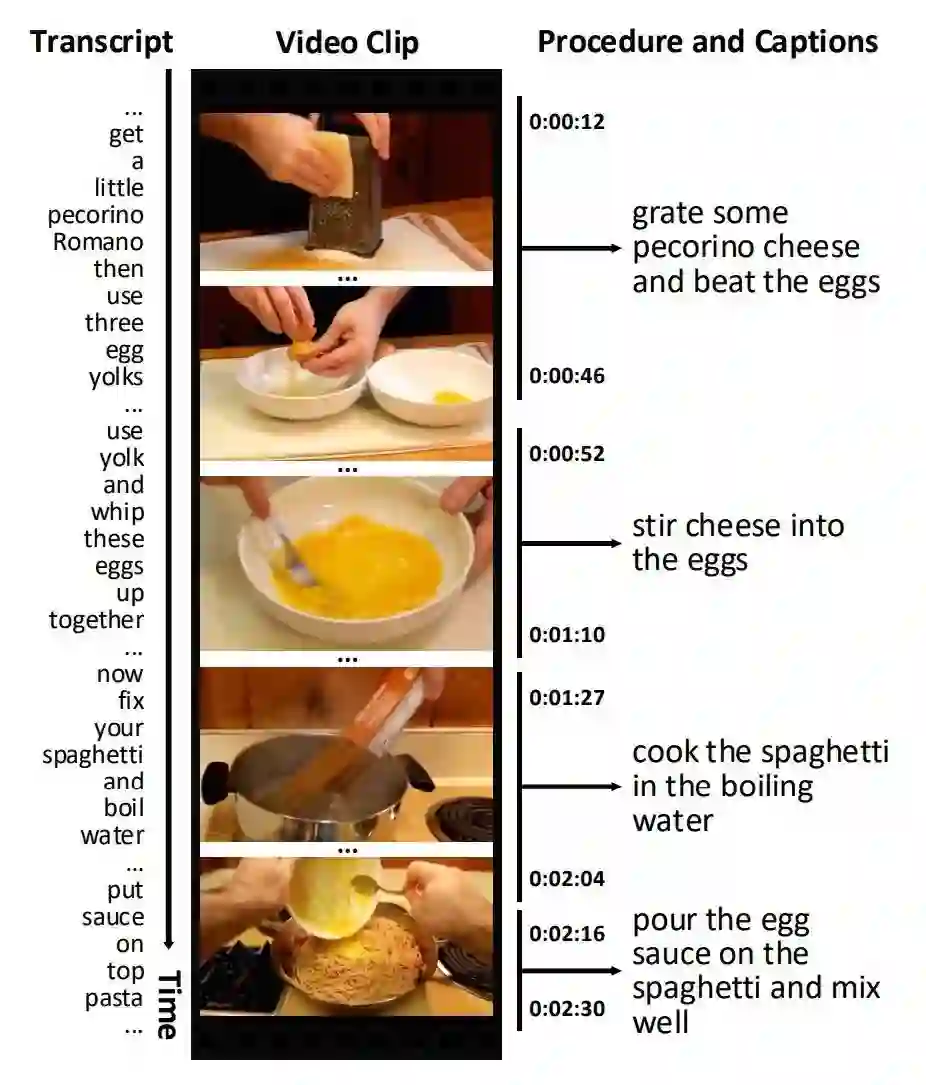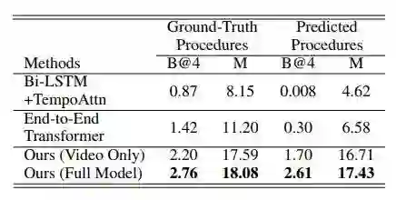 这项工作通过Azure Speech to Text云服务从视频中抽取旁白中Transcript。在YouCook II数据集上的Procedure Extraction和Procedure Captioning任务上都取得了最好的成绩。