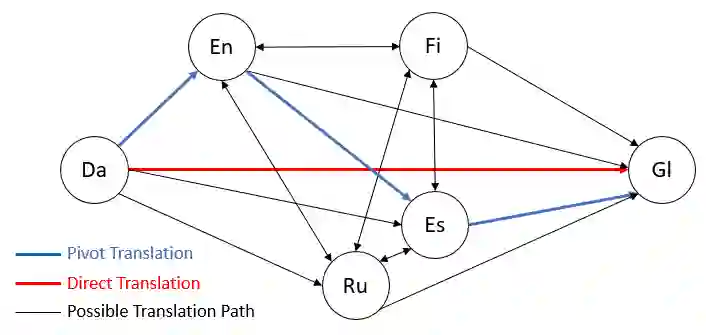 图13:无监督中转翻译在两个语言之间有多条可选路径
