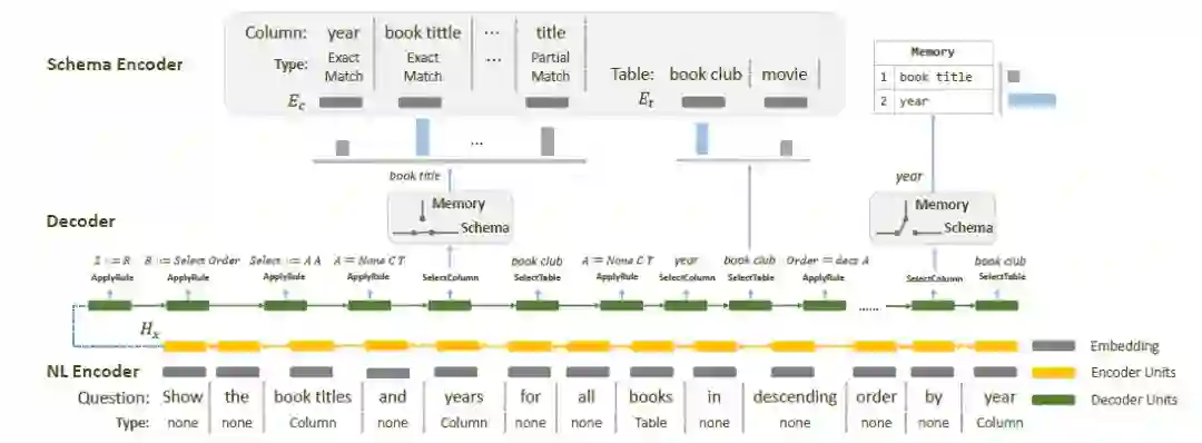 近年来,通过自然语言直接生成SQL查询语句引起了越来越多的关注。目前比较先进的模型在已有的NL-to-SQL的数据集上(例如WikiSQL、ATIS、GEO等)都取得超过80%的准确率。然而,在最近发布的Spider数据集上,这些已有的模型并没有取得令人满意的效果。究其原因,Spider数据集有两个特点:首先,Spider数据集里的SQL查询语句比目前已有的Text-to-SQL数据集更加复杂,例如SQL语句中包含GROUPBY、HAVING、JOIN、NestedQuery等部分。通过自然语言生成复杂的SQL查询语句尤其困难,本质原因是面向语义的自然语言和面向执行的SQL查询语句之间不匹配,SQL越复杂,不匹配的越明显;其次,Spider数据集是跨领域的(cross-domain),即训练和测试是在完全不同的database上做的。在跨领域的设置下,自然语言中出现了大量的out-of-domain(OOD)的单词,给预测列名造成了困难。