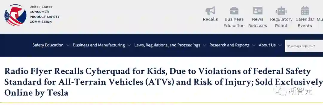 此外,这次召回还有一个关键点在于,CPSC将Tesla Cyberquad for Kids归于青少年ATV,而不是儿童玩具,因此以ATV的安全要求判定其不符合标准。