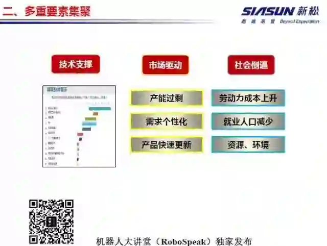 第二 市场驱动。产能过剩导致市场由卖方市场转向买房市场,我们需求要达到个性化;技术的快速发展导致产品周期的快速更新,要求生产模式向智能、柔性方向发展,要快速的更改,快速整定,适应不同的产能,甚至一条生产线要适应不同产品的生产。