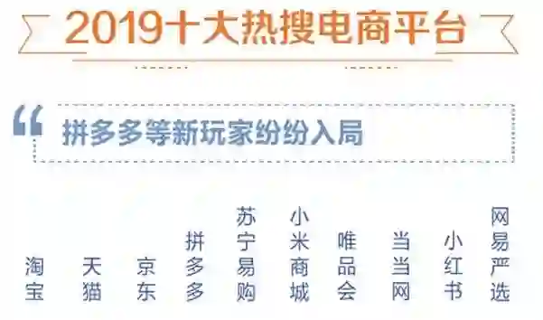 数据显示,2019“双十一”最受关注的十大电商平台,分别是淘宝、京东、天猫、拼多多、苏宁易购、小米商城、唯品会、当当网、小红书、网易严选。