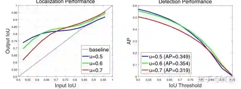 要注意的是Iterative bbox方式和Cascade RCNN方式的形式虽然一样,但是不同之处在于前者仅仅是用于测试阶段,可以观察到都是head network都是一样的,而后者各个head network都是训练来的。从形式来看,很明显就是将最后的分类和回归分支级联做了3次。这样做的依据就是: