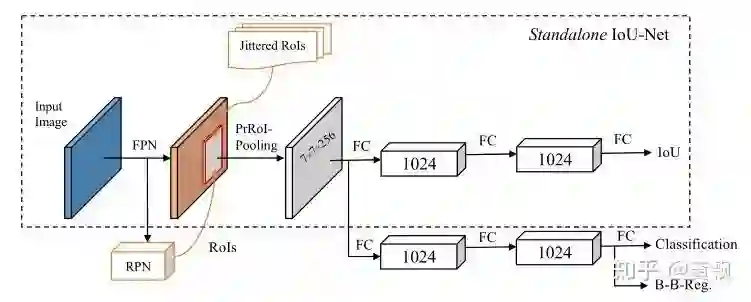 好了,我们回归正题,Cascade RCNN从样本质量分布mismatch和iou等角度进行了级联的refine操作。那么在IOU-Net[4]则是显式地说明了分类的分数不适合用于NMS的过滤,因为分类置信度高的样本不一定真的好。因此作者增加了一个样本与gt的iou预测阶段,以此作为NMS的排序依据。这里实际上就说明了分类和回归的冲突问题。