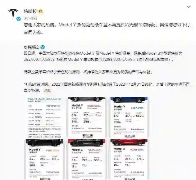 10月27日,特斯拉中国宣布,Model Y后轮驱动版车型不再提供冷光银车漆标配,选配需花费8000元。目前Model Y提供五种车身配色,包括纯黑、冷光银、珍珠白、深海蓝、中国红,除了纯黑外,其它四种颜色均需加价8000元选配。(经济观察网)