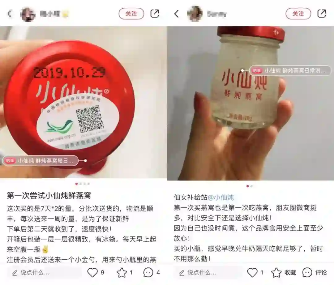 在尝试过闺蜜推荐的另一款即食燕窝后,这名用户表示,“如果我第一次吃到的不是小仙炖,很可能就与燕窝无缘了”。
