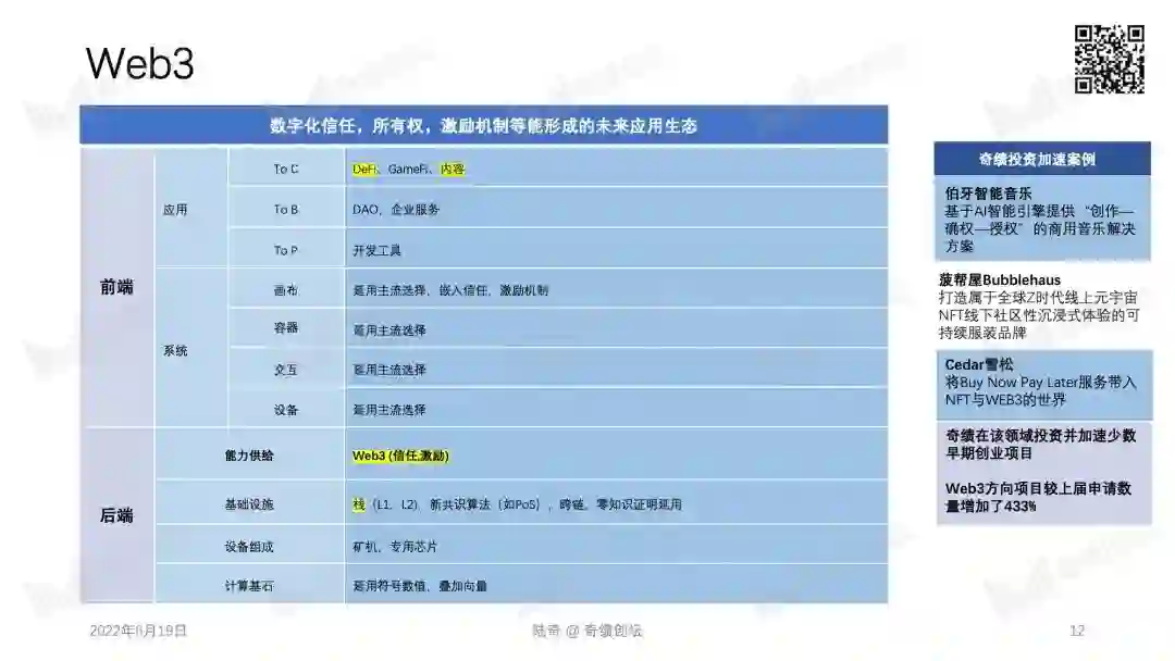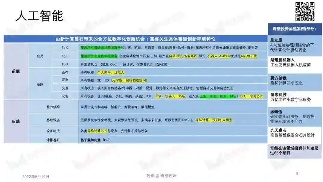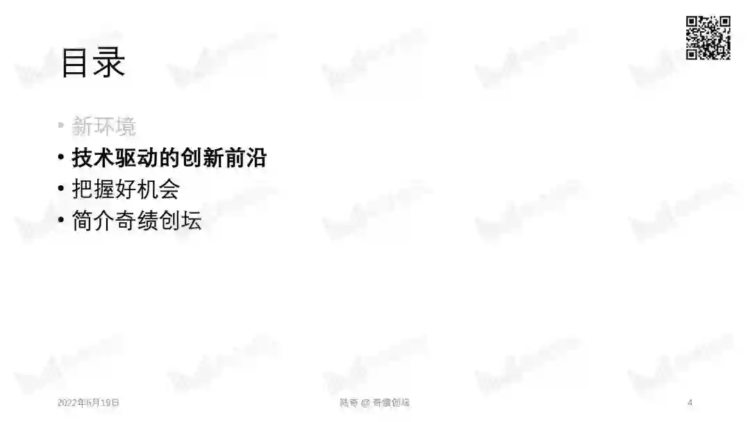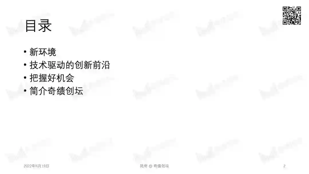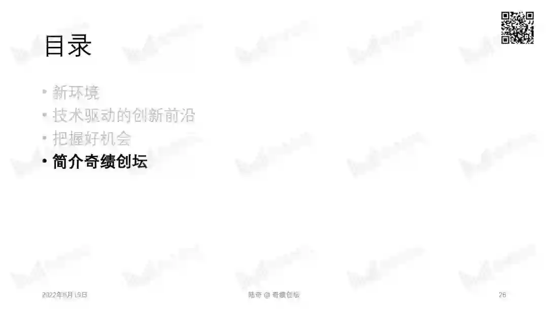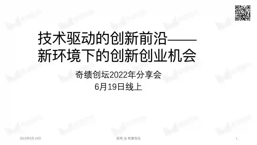 2022 年 10 月 29 日,奇绩创坛将在北京中关村举办年度分享活动。奇绩创坛创始人兼 CEO 陆奇博士将分享 2022 年前沿科技创新创业趋势,分享奇绩从 30000+ 份创业者的申请表里看到的科技创新地图,以及奇绩加速 250+ 科技初创公司后总结的经验。