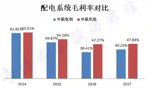 但值得注意的是,近两年电测的军用配电系统的毛利率下滑,且下滑幅度超过机载配电系统的龙头中航机电。