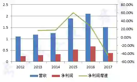 由于采购机制改革,军方推迟了订单交付时间,业绩在17年有所下滑。