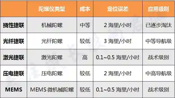 不同惯性导航所用到陀螺仪对比表格