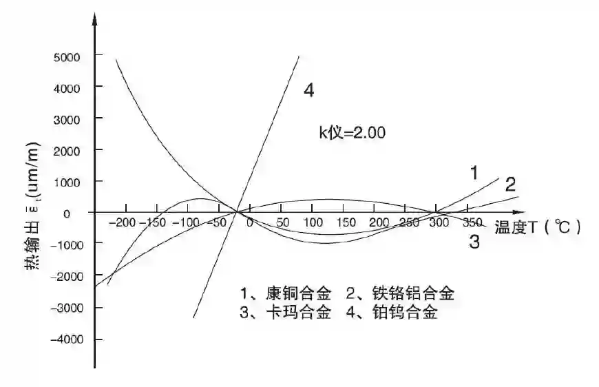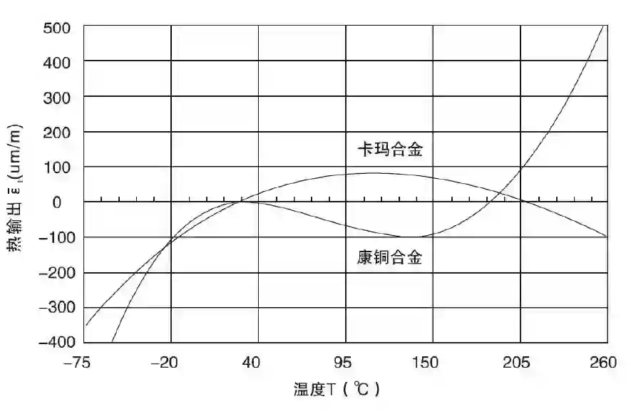 温度自补偿应变计的典型热输出曲线