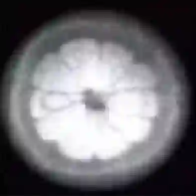 在美国,纽约大学的雷蒙德·达马迪安教授团队则在医学成像方面,拔得头筹,他们研制的医用核磁共振设备(图7)于1977年7月3日到了第一幅人体磁共振图像——胸部轴位质子密度加权图像(图8),标志着MRI技术在医学领域应用的开始,因此7月3日也被学界认为是医学磁共振成像技术的“生日”。