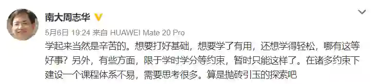作为国内人工智能领域的标志性人物,周志华教授的微博从来没有冷清过。这条微博发出之后立即引发网友的热烈讨论。有一些网友质疑有些课程设置对于本科学生而言难度过大,学时设置较少,浅尝辄止并不会学到真正的奥妙。