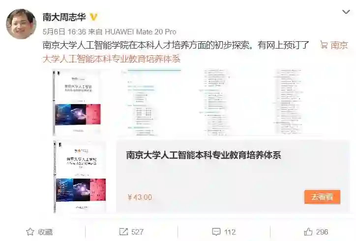 周志华教授在微博上与网友互动时表示,出版此书并非南京大学的炒作,自2016 年起,他就已经开始立项研究人工智能本科人才培养体系。