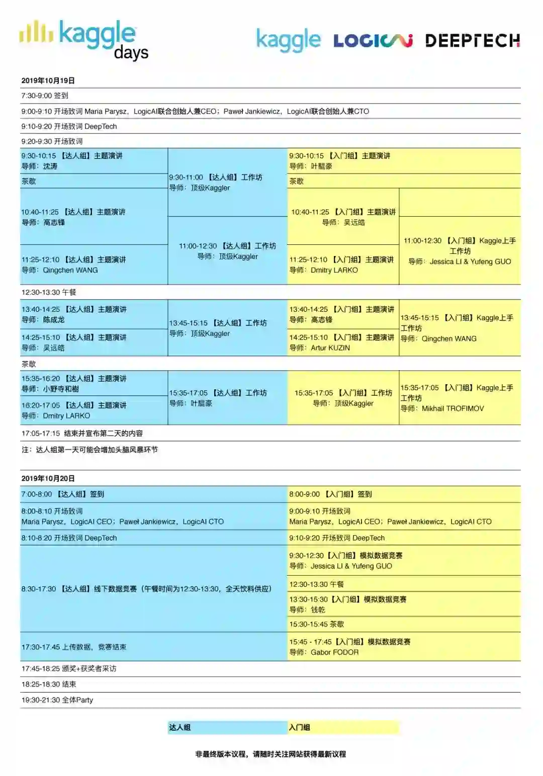 全球最知名的线下数据科学活动 Kaggle Days 将于 10 月 19 - 20 日首次落地中国北京。目前已经获得 6 位 华人 Kaggle Grandmaster、1 位 中国台湾地区 Kaggle Master 和 3 位 国际 Kaggle Grandmaster 的支持。这次 Kaggle Days 的中国首秀将由 Kaggle、LogicAI 和 DeepTech 联合主办,睡前 Futurelab 协办支持。