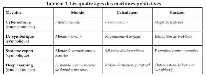 在这个工业前提下,新的数据科学的统计方法借用并开发了机器学习技术(贝叶斯,决策树,随机森林等)。但是,很显然,面对数据的量和异质性特点,更准确说是“验证”技巧,有必要使用更多的“试探性”和归纳的方法(杜克,1962年)。因此,在与行业接触中(最初是AT&T,然后是谷歌,Facebook和百度),神经网络的阴谋者将遇到问题:计算能力和数据上的,这些问题给他们机会去展示他们的机器的潜力,并将他们的观点加诸科学争议。他们将引出一个新的判准:当这些预测适用于“真实”世界时,预测是有效的。
