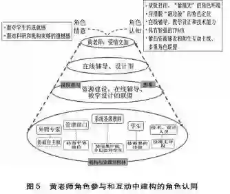 总之,黄老师在角色深度参与中建构了“在线辅导专家、教学设计专家”的显要性角色认同;在与机构和实践共同体互动中协商学术自主权、技术主导权和平等地位,建构了“极致教学”、联盟“教学设计、在线辅导、技术支持、心理辅导”多重角色的认同(见图5)。
