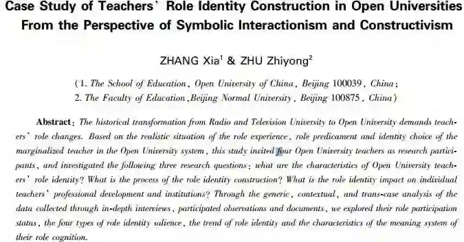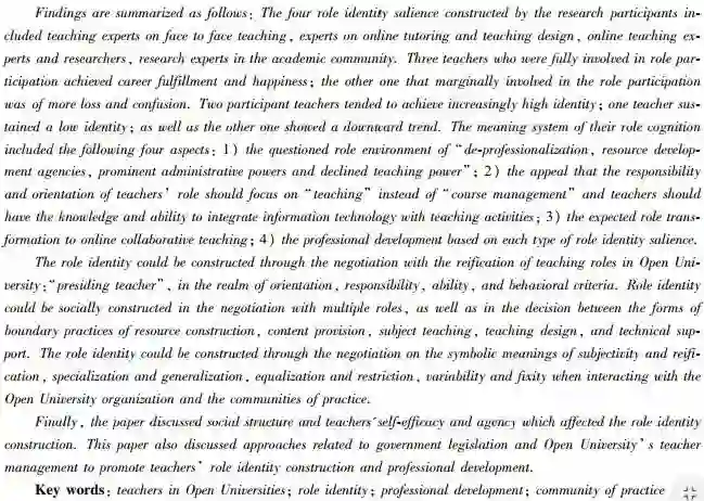 关键词:开放大学教师;角色认同;专业发展;实践共同体