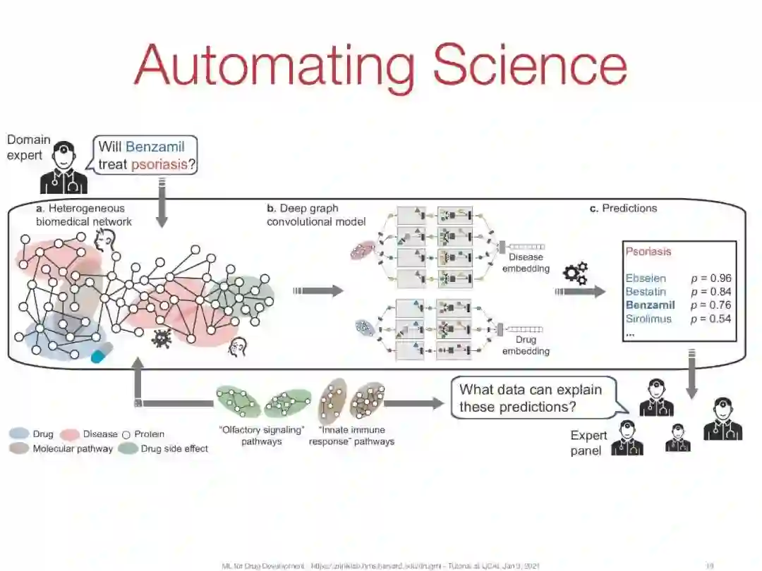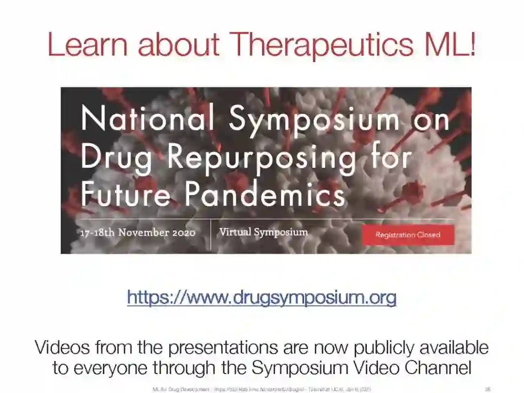 后台回复“MLDD” 可以获取《哈佛大学《机器学习药物研发》IJCAI综述报告,Marinka Zitnik教授等,137页ppt,》专知下载链接索引