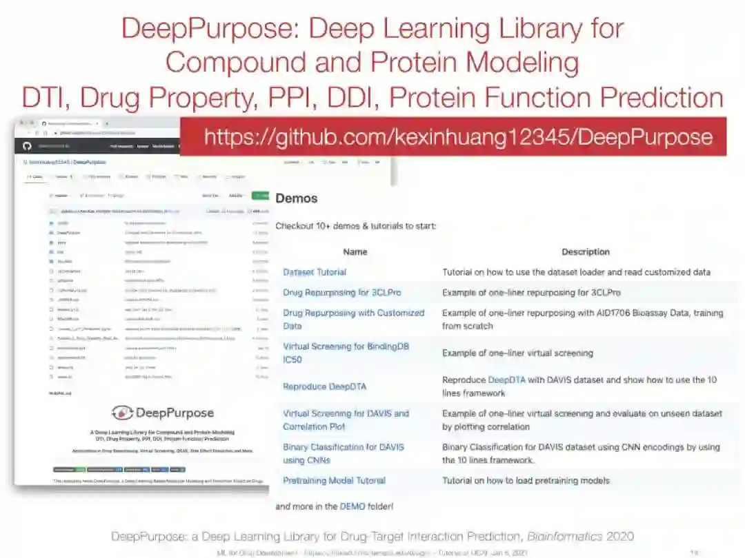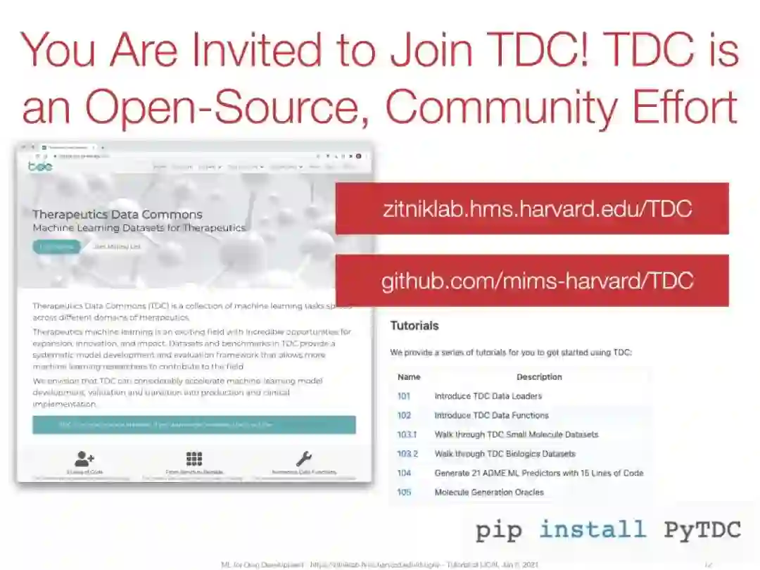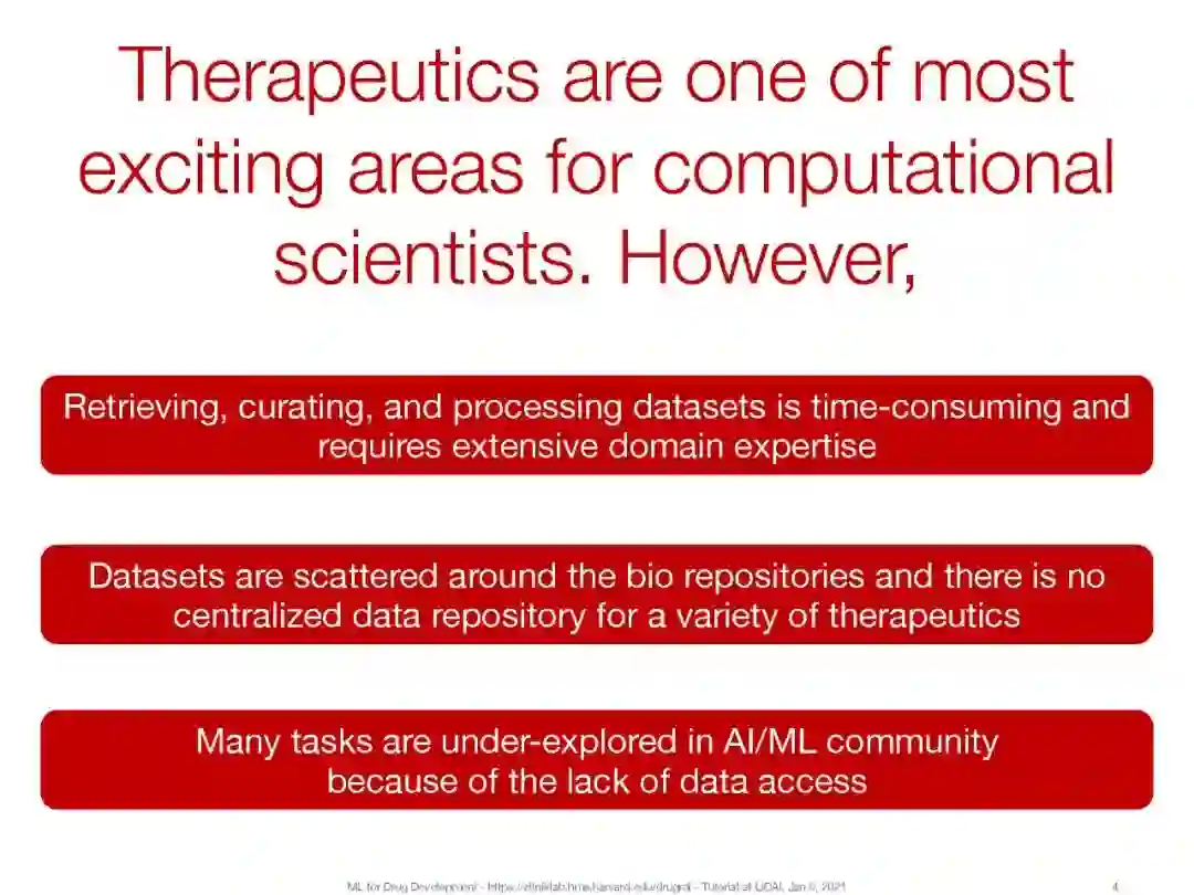 机器学习方法已成为解决这些挑战和加速药物开发的一种有前途的工具。本教程将介绍以下与药物相关的主要任务: