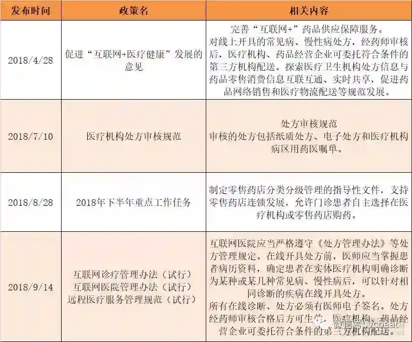 从以上政策可以提取出一个关键信息:互联网医院可以开具电子处方(限于常见病、慢性病),并与第三方合作,进行药品配送。