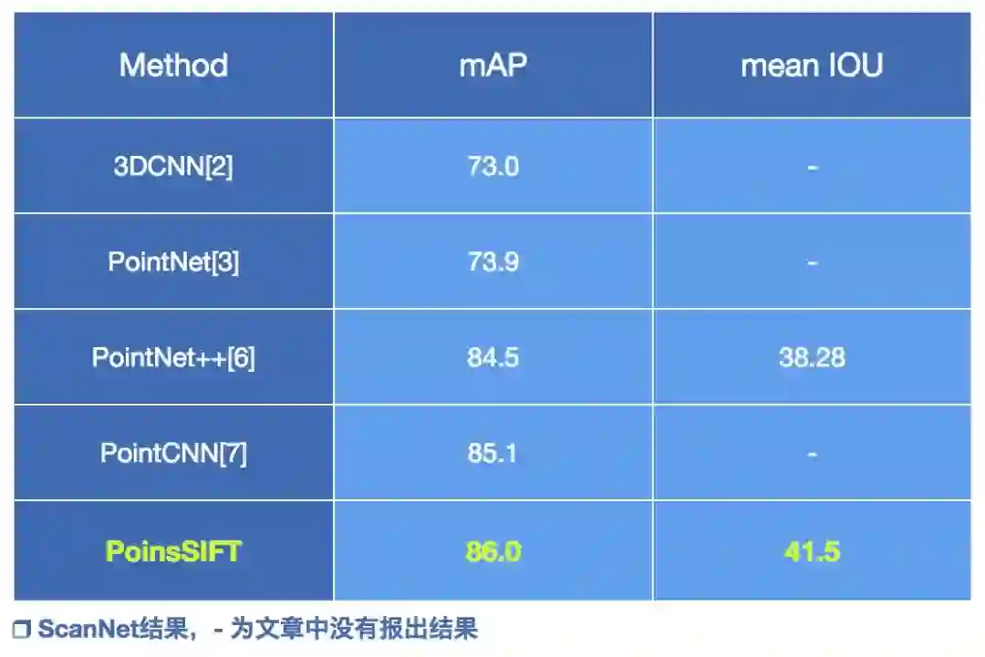 上海交通大学卢策吾团队MVIG实验室最近开源了PointSIFT,这是一个点云特征的提取模块。在Stanford Large-Scale 3D Indoor Spaces(S3DIS) [1] 数据集中可以达到70.23的mIoU(对比PointCNN 62.74,相对提高11.9%)。在另一个常用数据集Stanford的ScanNet [2] 上可以达到41.50的mIoU(对比PointNet++ 38.28, 相对提高8.1%)。