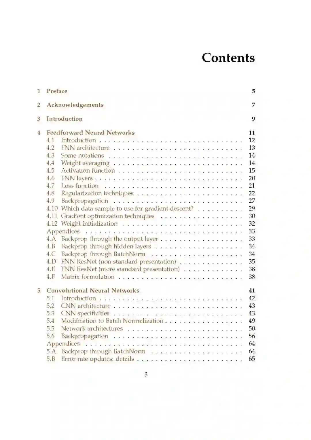 这篇书册以技术型的方式介绍了神经网络结构的三种最常见形式:前馈、卷积和循环。对于每个网络,它们的基本构建模块都有详细说明。然后,完整地推导出反向传播算法的前向传递和更新规则。
