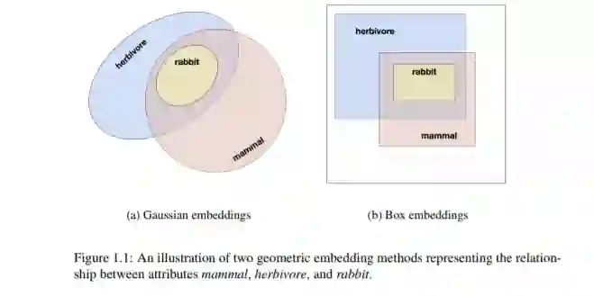 向量嵌入模型是现代机器学习知识表示和推理方法的基石。这些方法旨在通过在低维向量空间中学习概念和其他领域对象的表示,将语义问题转化为几何问题。本着这种精神,这项工作提倡基于密度和区域的表示学习。将领域元素作为几何对象嵌入到单点之外,使我们能够自然地表示广度和一词多义,进行不对称比较,回答复杂的查询,并在标记数据稀缺时提供强烈的归纳偏见。我们提出了一个使用高斯密度的词表示模型,实现了概念之间的不对称隐含判断,以及一个基于轴对齐超矩形表示(盒)格的加权传递关系和多元离散数据的概率模型。我们将探讨这些嵌入方法在不同的稀疏性、边缘权值、相关性和独立结构的适用性,以及表示的扩展和不同的优化策略。我们从理论上研究了盒格的表示能力,并提出了扩展模型来解决在建模困难的分布和图方面的不足。