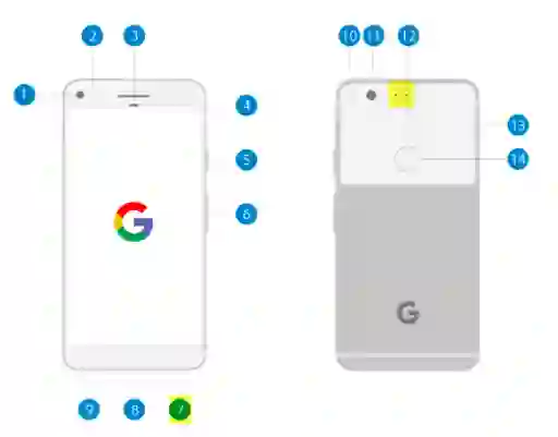 pixel 2016,黄色区域是麦克风的位置