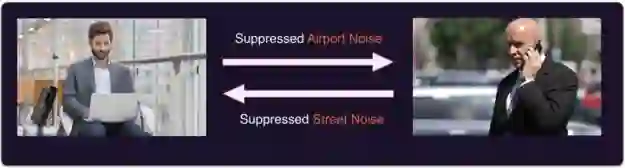 首先,我们要知道什么是噪声抑制。在这篇文章中,噪声抑制表示,当你与他人通话时,消除来自你所处背景中的噪声,同时也会消除对方背景中的噪声,如下图所示: