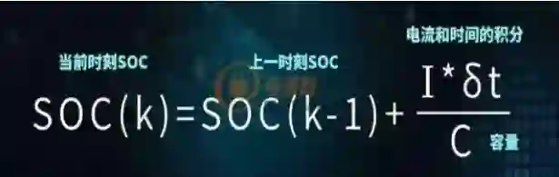 当前时刻的SOC,等于上一时刻的SOC,加上电流和时间的累积量除以容量。通过对于放电电流和时间的积分,计算得到当前的SOC。