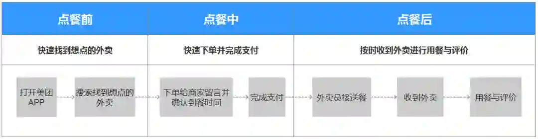 以美团外卖服务为例,当用户使用美团App点外卖时,涉及的触达点有点餐前、点餐中和点餐后。这3个触达点构成了产品的用户体验。