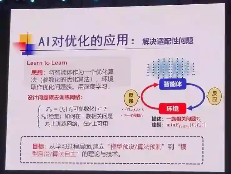 数学对于人工智能的基础性作用不言而喻,而反过来,人工智能技术同样也为数学领域的研究带来了全新的视角,并带来了一些革命性影响。徐宗本院士主要基于人工智能为优化、PDE 问题的数学研究所带来的推动作用,进行了该部分的介绍。