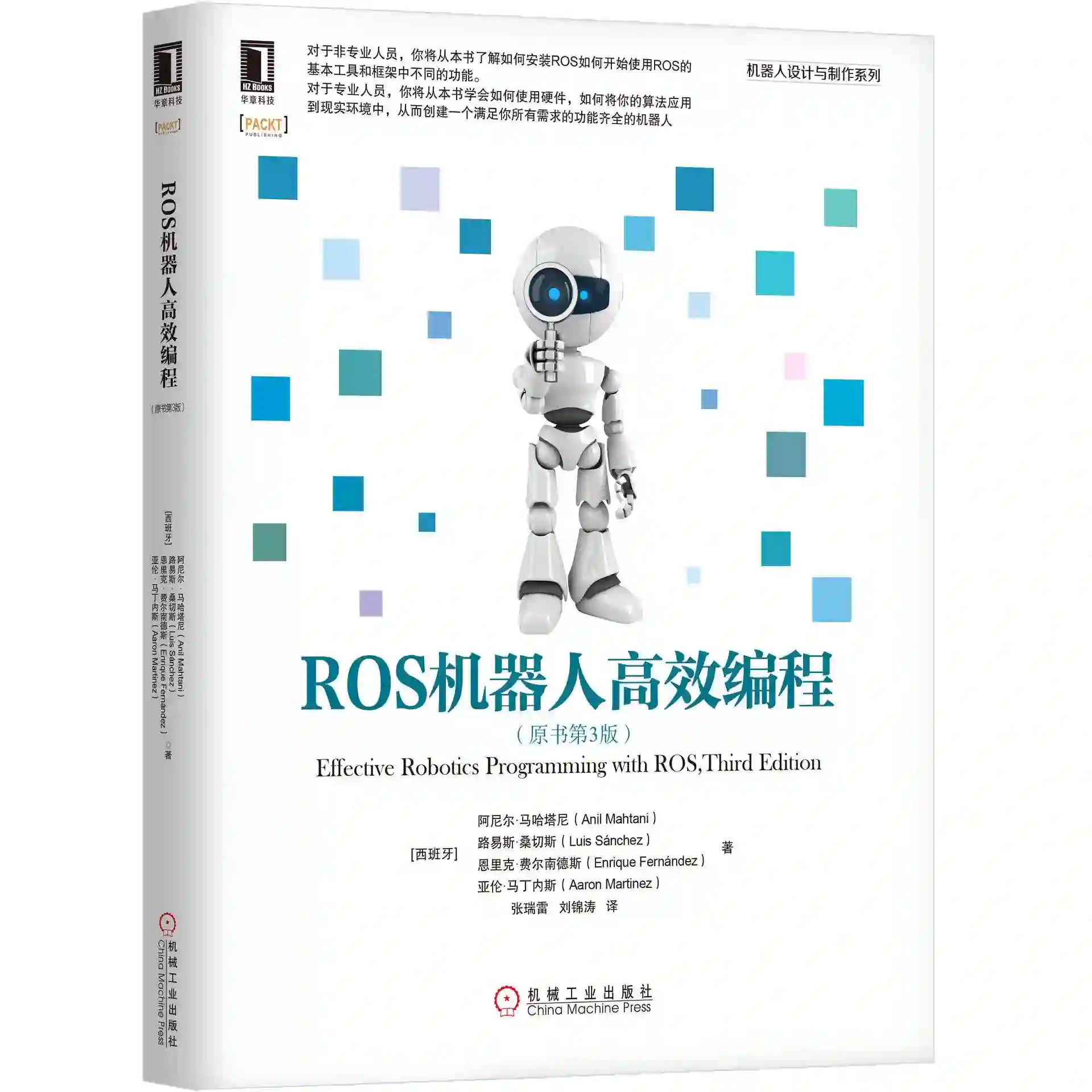 本书包含了实际动手操作的示例,帮助你开发机器人程序,并为你提供使用开源 ROS 库和工具的完整解决方案。本书还介绍了如何使用虚拟机和 Docker 容器来简化 Ubuntu 和 ROS 框架的安装,因此你可以在隔离和可控的环境中开始工作,而无须更改常规的计算机设置。